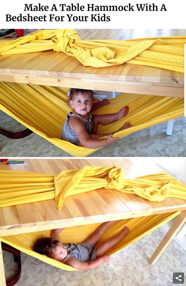 5. Krijoni nje shtrat te varur duke perdorur qarqafe qe i mbeshtillni perreth tavolines. Femijet tuaj do te kenaqen!