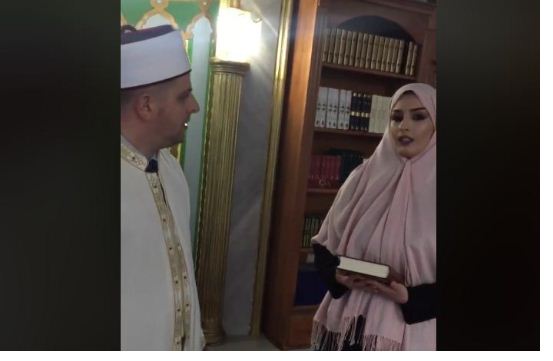 Në bazë të ceremonisë islame, Elena ka shqiptuar dëshminë (shahadetin), duke e mbajtur në duar librin e shenjtë ‘Kur’anin’.