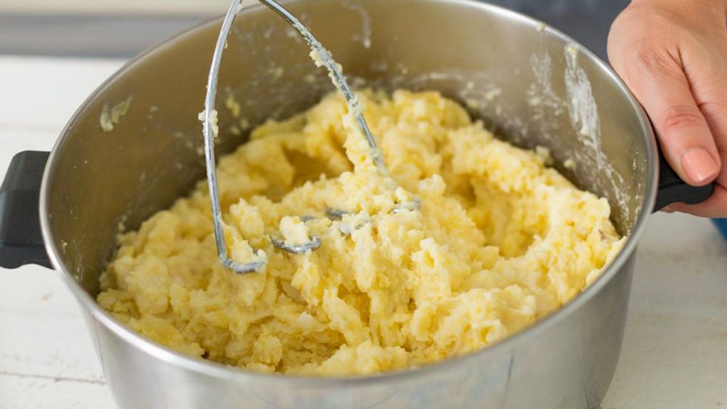 Para se të shtypni patatet dhe të shtoni qumështin, ngroheni atë në mënyrë që të mos ndikojë tek shija dhe tek ngjyra e puresë tuaj.