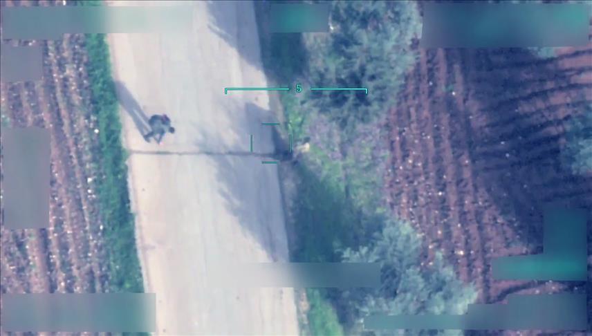 Në momentet kur avioni pa pilot i TSK-së gjatë ditës së hënë të javës së kaluar ishte duke filmuar, shihet se dy pjesëtarë të organizatës terroriste PYD/PKK vendosin eksploziv artizanal në dalje të një fshati në Afrin.