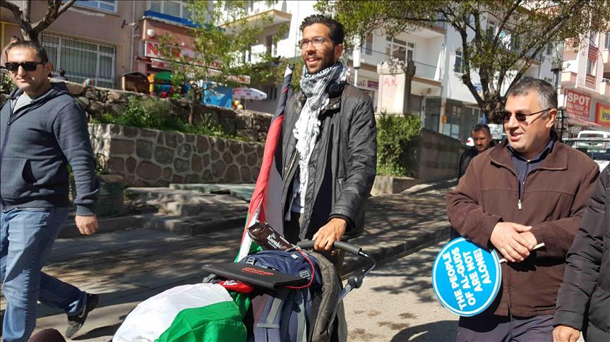Ladraa, i cili më 8 prill ishte nisur nga Stambolli për në Ankara, për AA tha se është në rrugë për më shumë se nëntë muaj dhe se në shtetet ku kalon rrëfen kauzën palestineze.