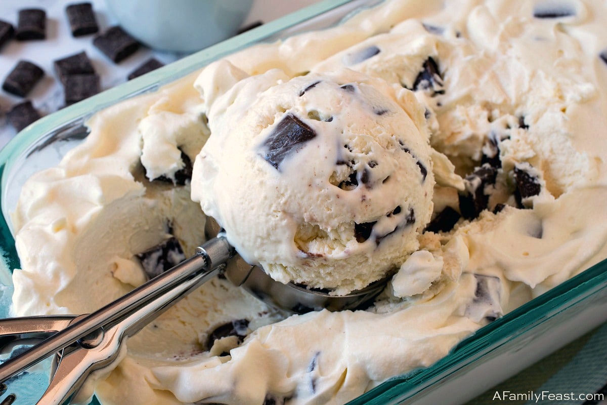 Sapo të ftohet pak e pëziejmë me copat e çokollatës dhe e vendosim përsëri në ngrirje.