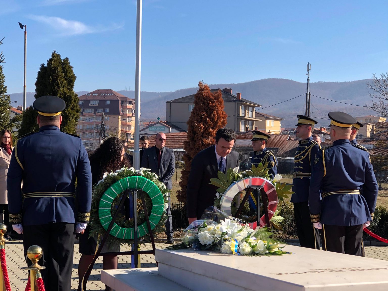 Në mëngjes kanë marrë pjesë në ngritjen e flamurit në oborrin e Qeverisë, për të vazhduar më pas ne Prekaz, ku kanë vendosur kurora lulesh.