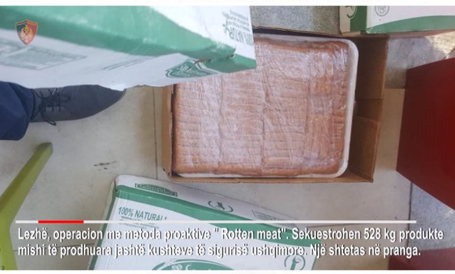 Policia e Lezhës bën të ditur se është finalizuar operacioni “Rotten meat”, ku u sekuestruan 528 kg produkte mishi, të prodhuara jashtë kushteve të sigurisë ushqimore, si dhe në bashkëpunim me AKU Tiranë, u bllokua punishtja ku prodhohej, transmeton tch.