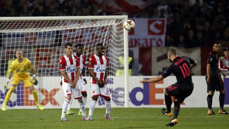 Në minutën e 80-të, Zvezda mbeti me një futbollist më pak në fushë, pasi mbrojtësi i majtë Rodic u përjashtua nga loja pas goditjes që i dha francezit Coquelin.