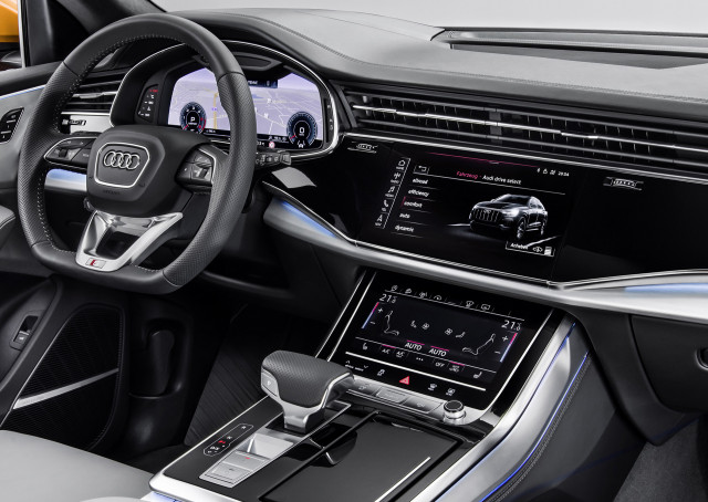 Pjesa e pasme e Audi Q8 është projektuar me karrige mbështetëse me përmasat 40/20/40, kontrollin e kondicionerit dhe shumë hapësirë. Një pult i gjerë, horizontal dhe një përzgjedhje e opsioneve të brendshme të zbukurimit ju ndihmojnë të jeni të lidhur me dizajnin.