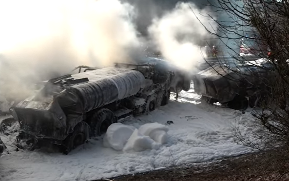 Një video e marrë pas aksidentit tregoi se automjetet morën flakë duke lëshuar tym të madh në qiell.