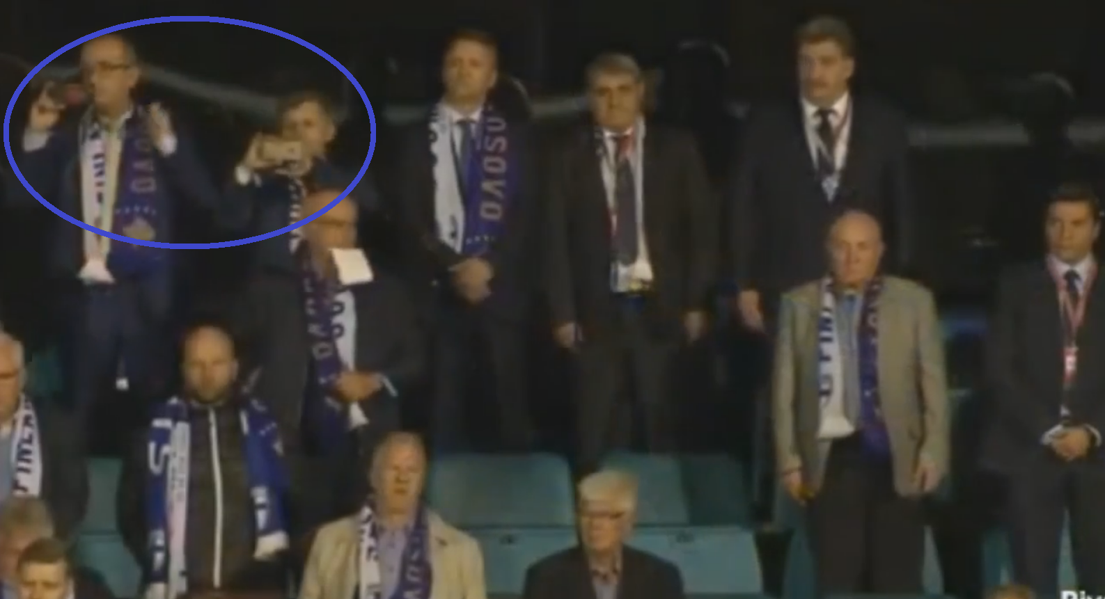 Megjithatë, në kohën kur po dëgjohej himni i Kosovës, dhe kur lojtarët me dorë në zemër po rrinin në heshtje duke nderuar, e bashkë me ta edhe gjithë shikuesit tjerë, dy deputetët kosovarë nuk ishin të vëmendshëm.