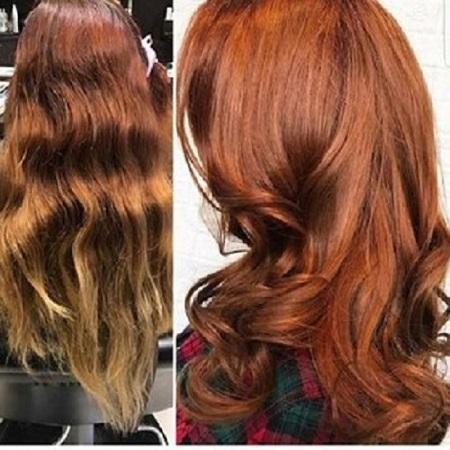 Lëreni pastën të veprojë derisa flokët ta kenë thithur ngjyrën (2-4 orë) dhe pasta të jetë tharë komplet. Për rezultat të shpejtë mund të përdorni tharësen e flokëve. Pastaj shpëlajini flokët me ujë dhe shampo, derisa uji të bëhet i kthjellët dhe pa ngjyrë. Thajini flokët me peshqir ose tharëse. Tani flokët tuaj janë të shndritshëm dhe të bukur.