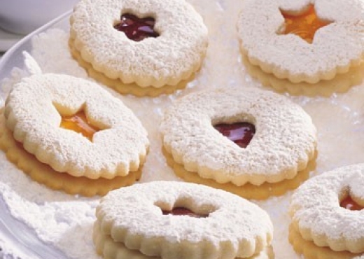 Biskotat e pjekura i mbushim sheqer pluhur dhe servojme sipas deshires me caj ose kafe.