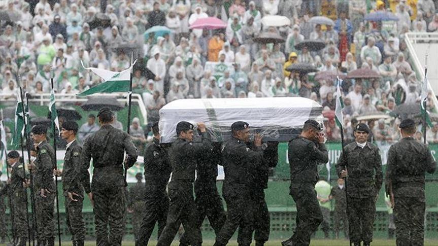 Rreth 20 mijë njerëz mbushën stadiumin e vogël, duke qëndruar nën çadra dhe mushama kundër shiut për t’i thënë lamtumirën e fundit lojtarëve të klubit lokal Chapecoense, të cilët humbën jetën në aksidentin ajror, raporton Anadolu Agency (AA).