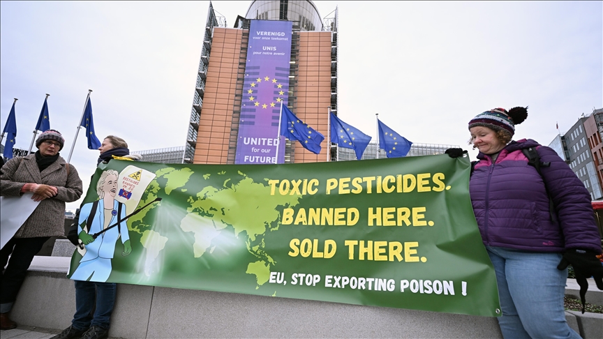Anëtarët e koalicionit evropian “End Toksic Pesticide Trade Coalition” organizuan protestë simbolike sot përpara selisë së Komisionit Evropian në Bruksel, raporton Anadolu.