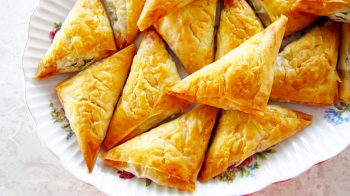 Shiritat prej brumi mund t’i mbushni një e nga një me nga një lugë gjelle nga mbushja e përzgjedhur dhe t’i mbështillni duke i dhënë formën e trekëndëshit.