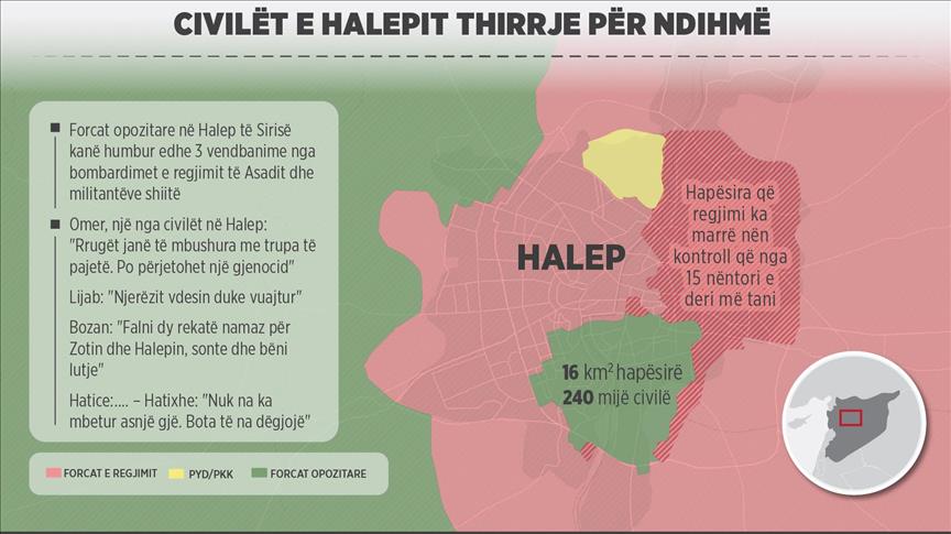 Civilët e Halepit të cilët ndodhen nën bombardimet intensive të regjimit të Asadit, forcave ruse dhe militantëve shitë të mbështetur nga Irani, bëjnë thirrje për ndihma humanitare, raporton Anadolu Agency (AA).