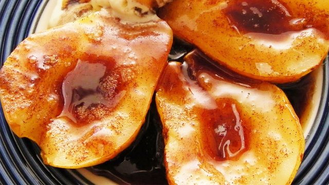 Përgatitja: Dardhën e ndarë në gjysmë e pastrojmë mirë në mes dhe bëjmë një gropëz në mes. Shtojmë pak mjaltë dhe e vendosim për 10 minuta në furrë të parangrohur në temperaturë 200 C. Më pas shtojmë ca arra, kanellë sipër dhe e lejmë diku 5-7 minuta të tjera. Dardhën e pjekur e vendosim në kos dhe i shtojmë pak mjaltë përsëri nga sipër dhe kanellë. Shija dhe aroma janë thjesht fantastike! Ju bëftë mirë!