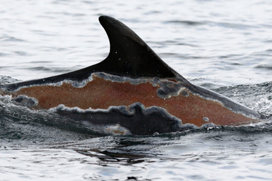 Delfini i mbijeton për mrekulli djegies nga dielli dhe lind një këlysh