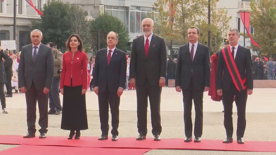 Presidenti Bajram Begaj, kryeministri Edi Rama dhe kryeministri i Kosovës Albin Kurti, por edhe kryeparlamentarja Elisa Spiropali dhe kryebashkiaku i Vlorës Ermal Dredha pas këndimit të Himnit Kombëtar, kanë vendosur kurora me lule pranë Monumentit të Pavarësisë në Sheshin e Flamurit, shkruan A2cnn.