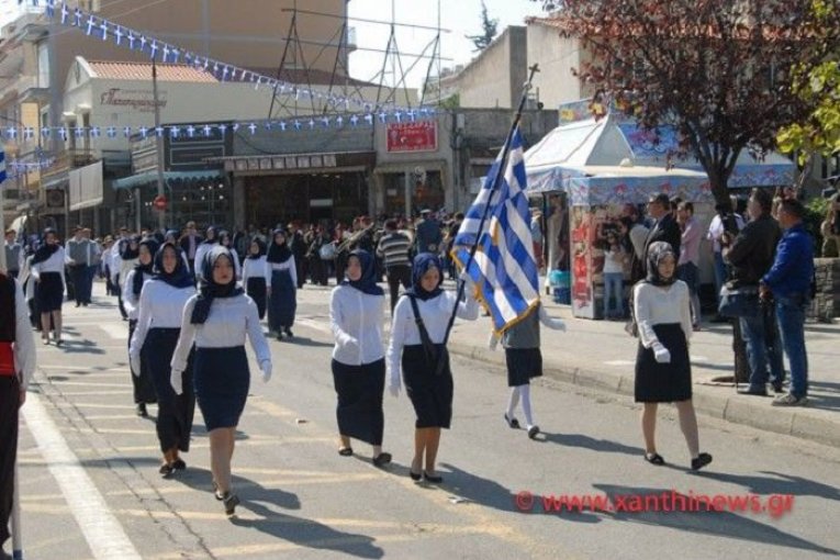 Për herë të parë në historinë moderne të Greqisë, të gjitha nxënëset në një paradë të mbajtur në Xanthi, mbanin shami muslimane. Në të kaluarën, shamitë muslimane janë shfaqur rrallë masivisht në parada studentore.