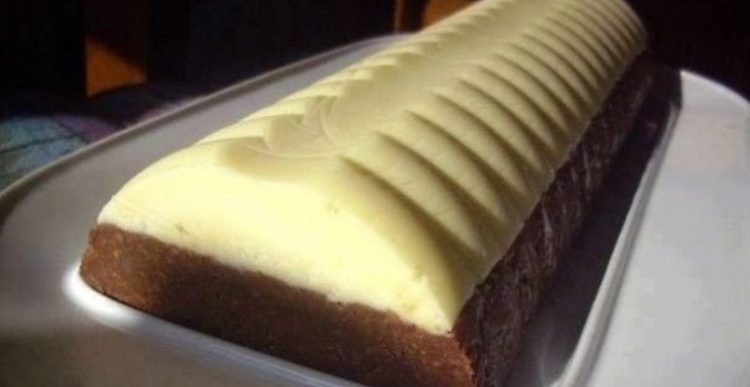 Perzijmë që të dyja masat dhe shpejtë derisa janë akoma të ngrohta I qesim në kallep të lyer me margain ose vaj duke I shtrire së pari masën e bardhë e pastaj të kaftë.