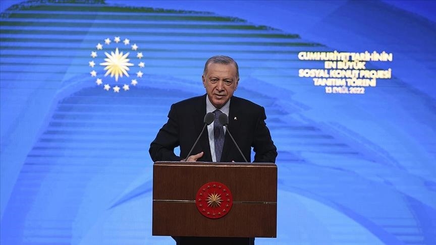 Presidenti i Turqisë, Recep Tayyip Erdoğan, shpalli sot fillimin e projektit më të madh të banesave sociale në historinë e vendit, i cili brenda pesë viteve parashikon ndërtimin e 500 mijë banesave, 50 mijë objekteve të biznesit dhe sigurimin e 250 mijë parcelave të gatshme për ndërtim, raporton Anadolu Agency (AA).