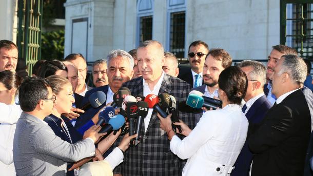 Pas namazit të Bajramit në Xhaminë ‘Hazreti Ali’ në Stamboll, Erdoan vlerësoi për gazetarët që e prisnin problemet që përjetohen në botën islame.