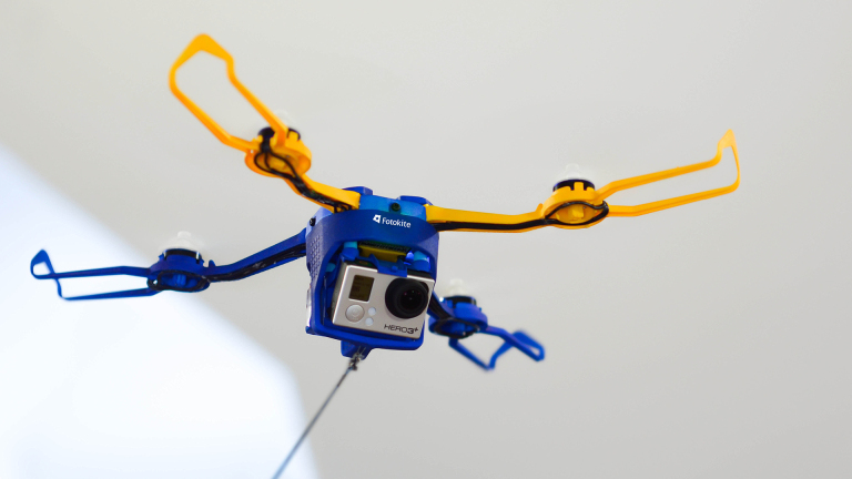 A eshte dron apo flutarake? “Fotokite” eshte i pari dron komercial i cili ben fotografi nga lart, dhe eshte i aprovuar nga FAA per te bere fotografi te tilla. Ai mbhet permes nje konopi qe dirigjohet ngjashem me flutaraken. Ajo vendoset direkt te nje pajisje dhe kontrollohet lehtesisht. Nje dron i ketille eshte zhvilluar permes nje projekti qe ka kushtuar rreth 400.000 dollare. /MESAZHI/
