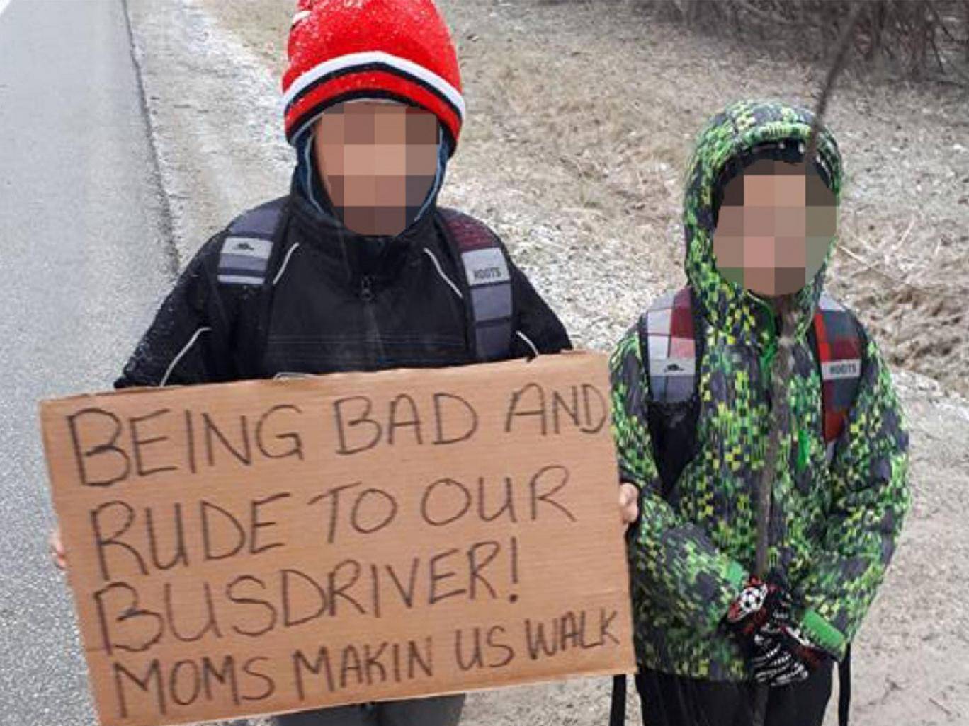 Nëna në fjalë i kishte detyruar fëmijët që të shkonin deri në shkollë duke mbajtur në duar pankarta “U sollëm keq me shoferin e autobusit, nëna na ka dënuar”.