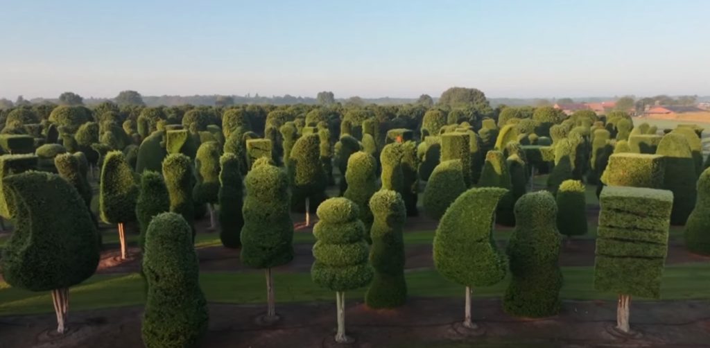 Në këtë fermë prej 150 hektarësh rriten rreth 500 lloje pemësh nga pisha te magnolia. Por kryeveprat janë këto forma të rralla që kërkohen nga arkitektët, koleksionistët dhe madje edhe produksionet filmike që duan të krijojnë botë ëndrrash.