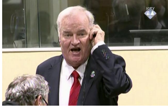 Reagimi ishte deri në atë mase sa edhe i shau trupin gjykues, duke ju thënë: “Këto janë gënjeshtra, jua … nënën tuaj, kriminela”, ka vazhduar duke bërtitur Mlladiç, deri sa është nxjerrë nga salla, nga dy policë.