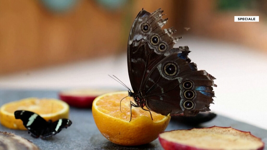 Po humbasim fluturat: simbol i bukurisë dhe pranverës. Në këtë kopsht zoologjik afër Athinës, fluturat e bukura shumëngjyrësha thithin qetësisht lëngun e ëmbël nga disa feta të prera portokalli.