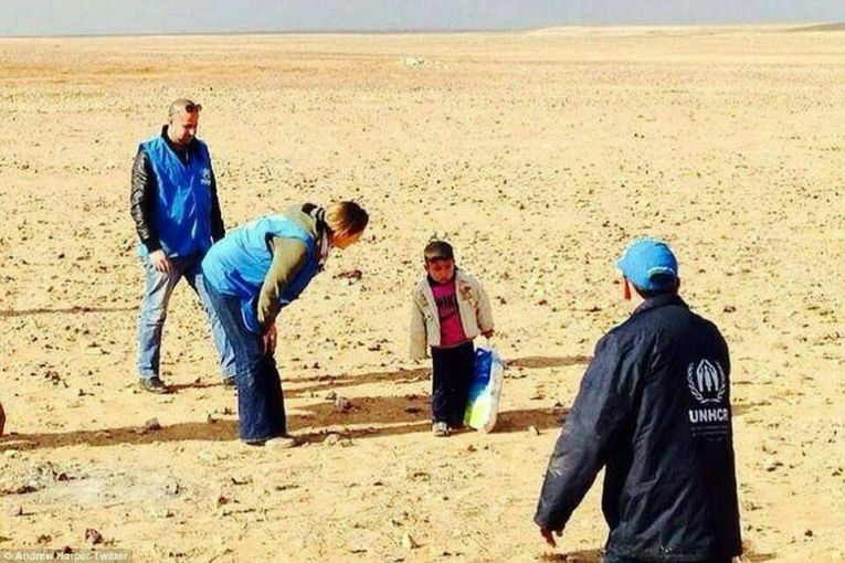 Në rrjete po qarkullon fotoja e një të mituri sirian 4-vjeçar, i cili i vetëm udhëton në shkretëtirë, i ikur nga lufta në vendin e tij. Përflitet se ai është gjetur hasur rastësisht nga një ekip i UNHCR-së, siç shihet dhe në foto. Për të thuhet se ka patur me vete vetëm një qese ku mbante rrobat e nënës dhe një motre, të dy të vdekur.