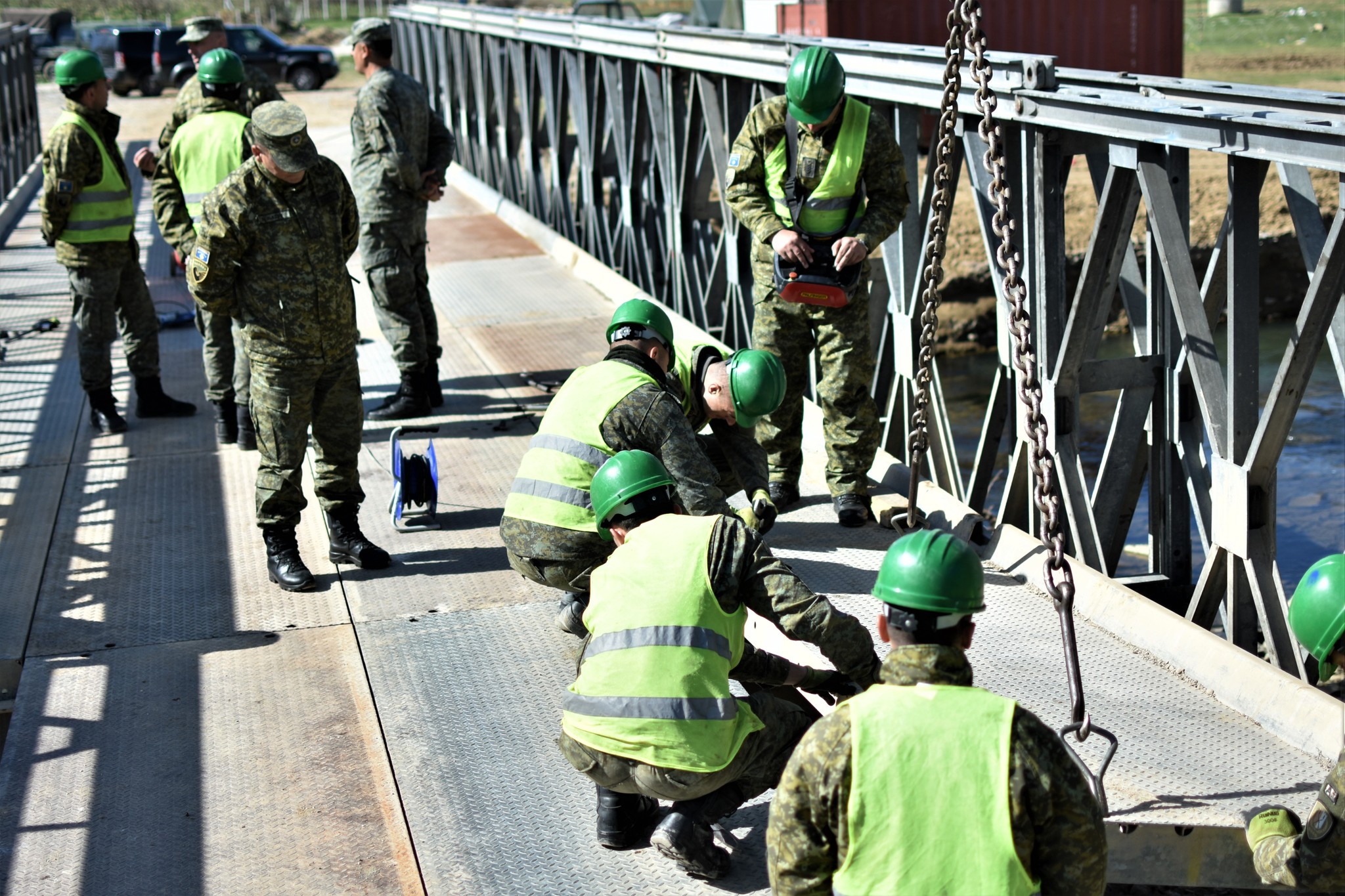 Me përkushtim dhe punë profesionale, xhenierët e regjimentit të Xhenios së Gardës Kombëtare të Forcës së Sigurisë së Kosovës, kanë përfunduar me sukses ndërtimin e urës mobile në fshatin Aqarevë të komunës së Skenderajt.