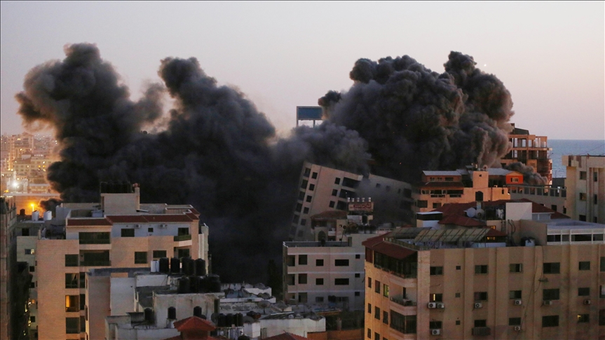 Korrespondenti i AA-së raportoi se avionët luftarakë goditën kullën 12-katëshe ‘Hanadi’ që ndodhet në lagjen al-Rimal.