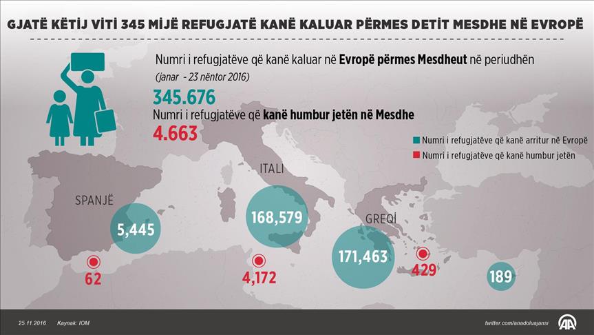 Organizata Ndërkombëtare për Migrimin (IOM) ka deklaruar se që nga fillimi i këtij viti deri më tani, 345.676 refugjatë kanë kaluar përmes Detit Mesdhe drejt Europës, raporton Anadolu Agency (AA).
