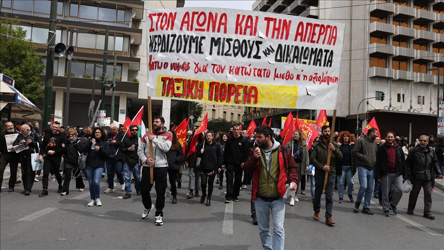 Në qendër të Athinës, mijëra njerëz marshuan drejt parlamentit grek, duke bërë thirrje për paga më të larta dhe duke kritikuar trajtimin e krizës ekonomike nga qeveria.