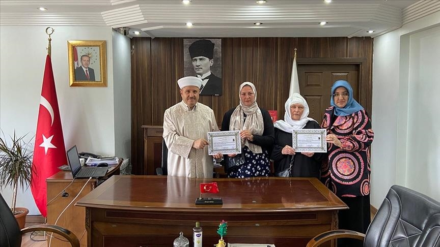 Gjatë ceremonisë, Myftiu i Provincës Ercan Aksu prezantoi nënën dhe vajzën me parimet themelore të Islamit.