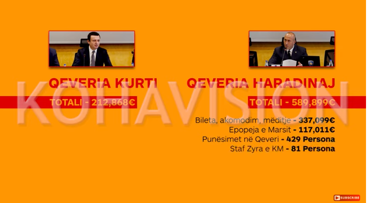 Karburant për vetura në kohën e Haradinajt janë shpenzuar 70 mijë e 67 euro, derisa Kurti i ka harxhuar 31 mijë e 792 euro. Për shpenzime të telefonisë Ekzekutivit të udhëhequr nga Kurti i janë përshkruar 12 mijë e 200 euro, atij të Haradinajt 17 mijë e 592 euro.