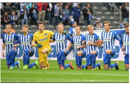 HERTHA BERLIN u bë skuadra e parë e futbollit që ra në gjunjë në solidaritet me protestat në Shtetet e Bashkuara kundër pabarazisë racore.