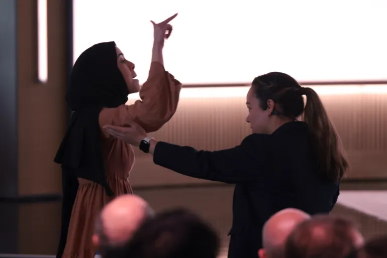 “I gjithë Microsofti ka gjak në duart e tij” 06/04/2025 A pro-Palestinian demonstrator Ibtihal Aboussad is escorted away by security Share this: Click to share on Facebook (Opens in new window) Facebook Click to share on X (Opens in new window) X
