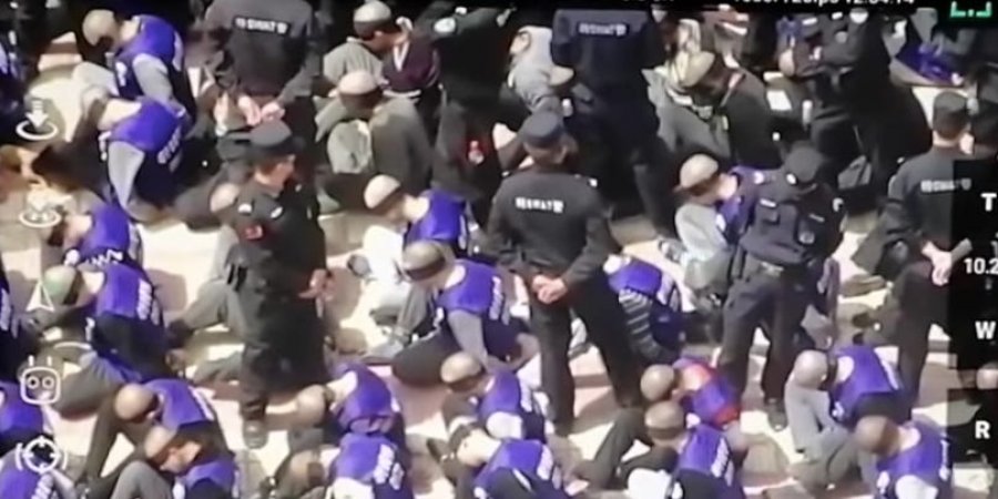 Xhirimet nga droni treguan me qindra njerëz me sy të lidhur dhe në pranga, që duket se janë ujgur dhe grupe tjera të pakicave, ku besohet se po bëhej transferim i të burgosurve në Xinjiang gushtin e kaluar.