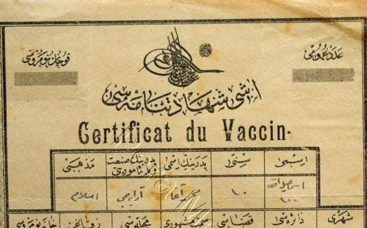 Çertifikatë vaksinimi kundër pandemisë në kohën e Perandorisë Osmane gjatë periudhës së Sulltan Abdulhamidit të dytë në vitin 1326 hixhri: