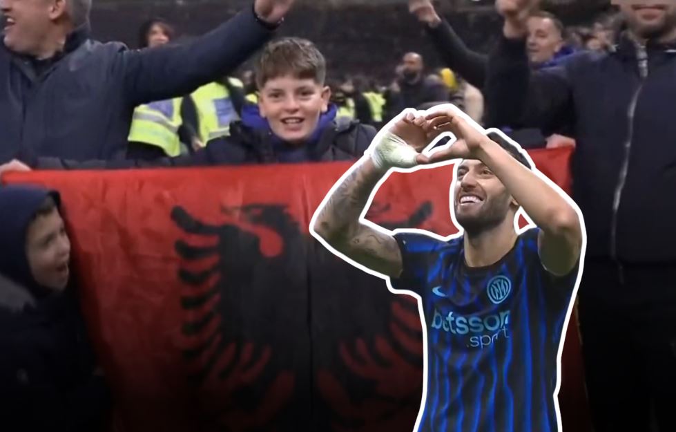 Në tribuna te stadiumit “Guiseppe Meazza” ishte i pranishëm edhe flamuri shqiptar.