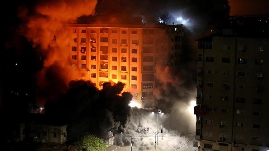 Izraeli shkatërroi ndërtesën 14-katëshe Al-Shorouk, në të cilën gjendeshin apartamente dhe zyra tregtare në një nga zonat më të ngarkuara të rajonit të bllokuar të Gazës, raporton Anadolu Agency (AA).