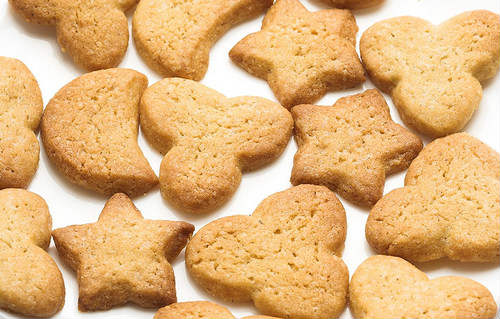 Këto biskota me forma të ndryshme do jenë ushqimi i ri i preferuar për fëmijët tuaj! Hidhni sheqer pluhur mbi për dekorim.