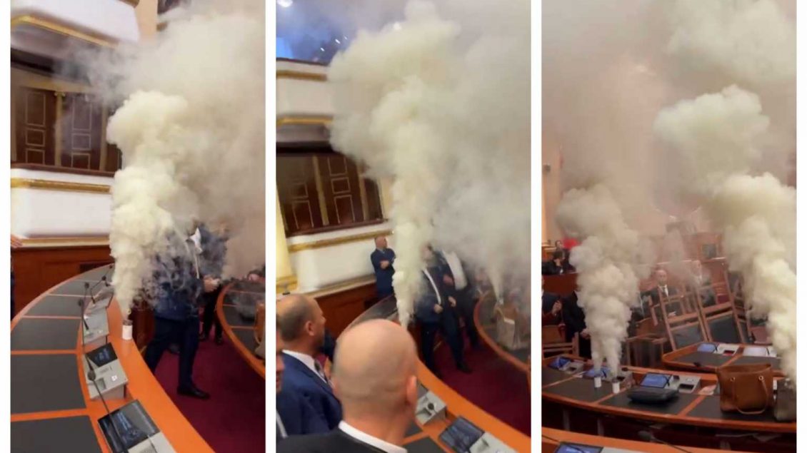 Deputetët e opozitës kanë ndezur disa tymuese në Kuvendin e Shqipërisë, gjatë zhvillimit të seancës së sotme plenare.