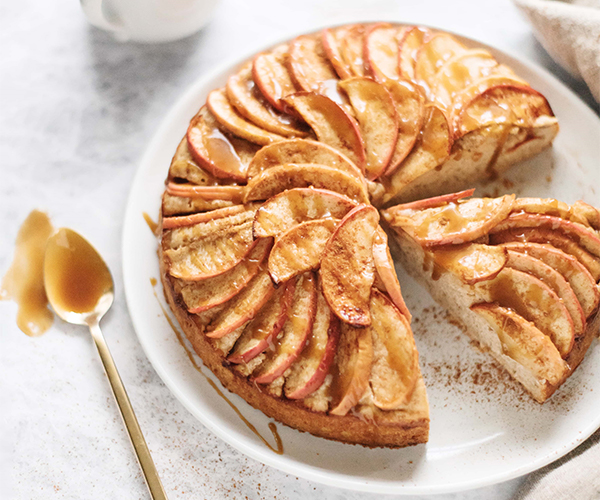 Ndërkohë qëroni mollët, i prisni ato në feta me trashësi mesatare dhe i përzieni me lëng limoni, 2 lugë sheqer, vanilje dhe pak kanellë. Mbuloni komplet tavën e kekut me feta molle në formë rrethore dhe e vendoseni atë në furrën e parangrohur në 180 gradë Celsius për 35-40 minuta. Pasi keku të ftohet mund ta pudrosni me sheqer pluhur sipas dëshirës