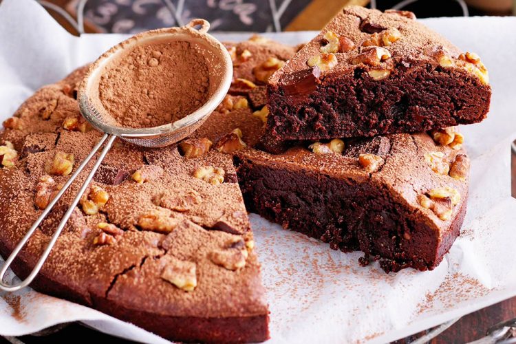 Lihet të ftohet pak, hiqet nga tava dhe sipër i hidhet sheqer pudër por edhe pak kakao pudër nëse preferoni.