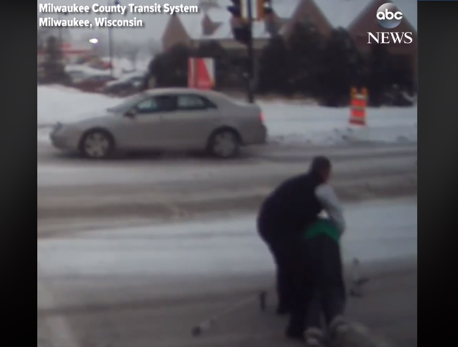 Ky shofer autobusi e ndalë automjetin në mes të rrugës për të ndihmuar një grua me paterica, e cila rrëzohet për shkak se rrëshqet në borë. Ai i del në ndihmë asaj, dhe më pas bashkohet edhe një tjetër person. /MESAZHI/