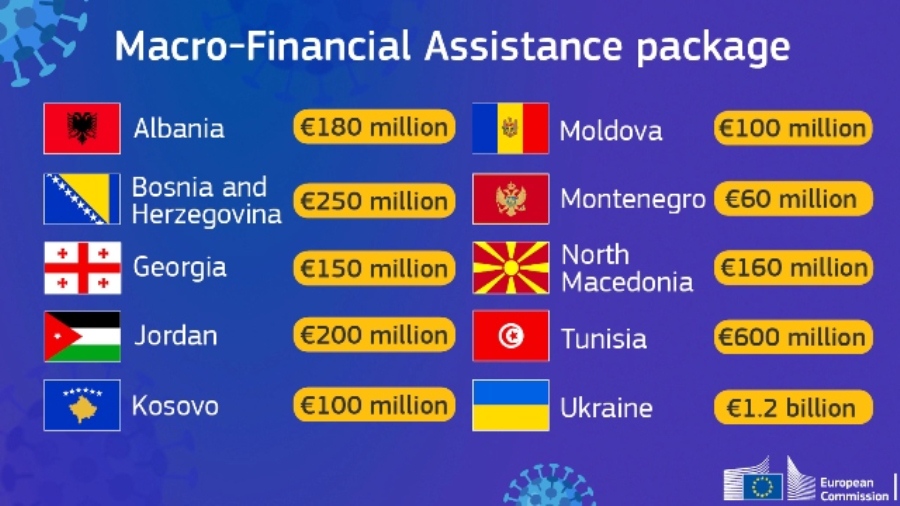 “Shtete përfituese të propozimit 3 miliardësh të Komisionit Evropian për koronavirusin janë Shqipëria, Bosnja e Hercegovina, Gjerogjia, Jordania, Kosova , Moldavia, Mali i Zi, Tunizia, Maqedonia e Veriut dhe Ukraina”.
