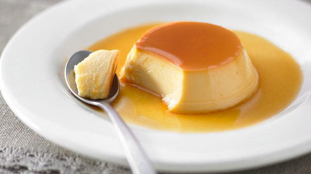 Duhet të bëni kujdes, sepse karameli mund të ngrijë nëse nuk e ndiqni recetën si duhet. Sheqerin e hedhim në një tenxhere të vogël që nuk ngjit. E lëmë të shkrijë në flakë të mesme, por pa e përzier me lugë, mjafton të rrotullojmë tenxheren. Kur sheqeri të tretet plotësisht dhe të marrë ngjyrë, shtojmë pak nga pak ujin dhe vazhdojmë e përziejmë me rrahësin e vezëve derisa të bëhet homogjene. E heqim nga zjarri dhe e shpërndajmë te të katra masat. Hedhim kremin që lamë mënjanë nëpër format me karamel, i vendosim në një tavë të mbushur me ujë. I pjekim në furrën e ngrohur paraprakisht në temperaturën 160°, për 40 minuta. I lëmë të ftohen në temperaturën e ambientit dhe i futim në frigorifer. Para se t’i shërbejmë, kalojmë majën e thikës anash kremit që të dalin pa vështirësi nga format kur t’i përmbysim në pjatat e ëmbëlsirave.